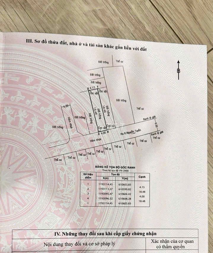 Bán đất đường nguyễn tuyển, phường bình trưng tp.hcm. -Vị trí: gần mặt đường Nguyễn Tuyển, phường Bình Trưng, ( Quận 2 ) TP.HCM. -Diện tích: 75m², ngang 4m x 19m full thổ cư, nở hậu, đường trước nhà 6m. -Tiện ích: gần mặt đường nguyễn duy trinh quận 2 thuận tiện di chuyển về khu đông thanh phố, đường cao tốc, di chuyển về trung tâm am khánh quận 2 cũ chỉ 10 phút. Khu dân cư đông đúc nhiều chung cư, mặt đường nguyễn duy trinh buôn bán sầm uất, kế bên chợ Tân Lập và giáo sứ Tân Lập, nhiều khu thể thao như sân bóng đá, sân cầu lông, trường tiểu học, bệnh viện lê văn thịnh,... -Giá bán: 8,5 tỷ sổ hồng riêng.