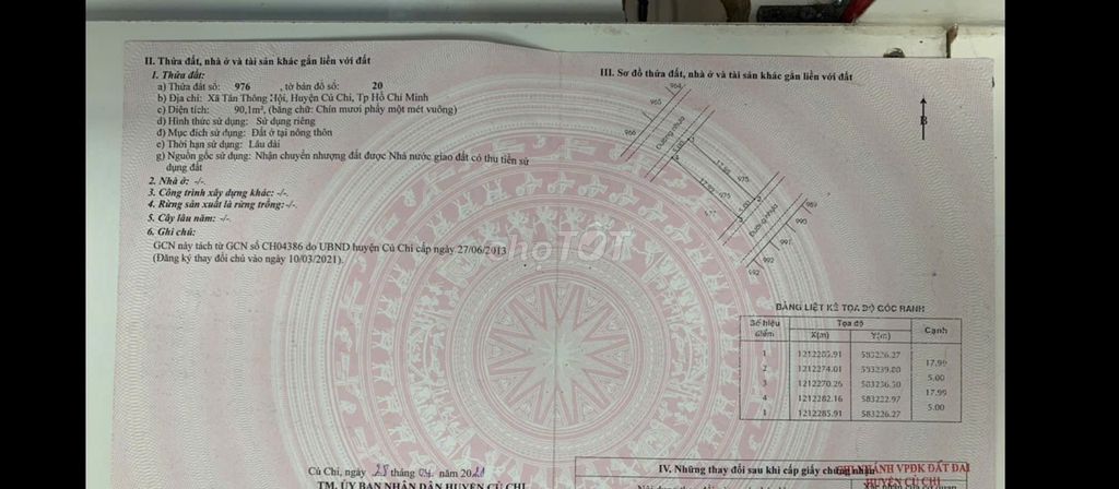 Cần bán đất full thổ cư 90m2 2 mặt tiền trước sau đường Trần Văn Chẩm xã Tân Thông Hội , huyện Củ Chi , tp. Hồ Chí Minh - Diện tích : 5 x 18 , công nhận 90m2 vuông vức như A4 - Đất full thổ cư hoàn toàn , quy hoạch khu dân cư hiện hữu - Vị trí nằm cách quốc lộ 22 chưa đến 100m , bán kính 500m xung quanh gần nhiều khu tiện ích Co.op mart Củ Chi , trường học cấp 1,2,3,đại học, cầu vượt Củ Chi , bệnh viện Xuyên Á . Đường thông ra Tỉnh Lộ 2 . Khu dân cư hiện hữu , quy hoạch phân lô bàn cờ đường xe hơi chạy thông thoáng . - Pháp lý : chính chủ đứng bán , đất đã có sổ hồng , không vay ngân hàng sẵn sàng công chứng ngay . - Giá bán : 2.5 tỷ thương lượng Liên hệ Hiếu chính chủ