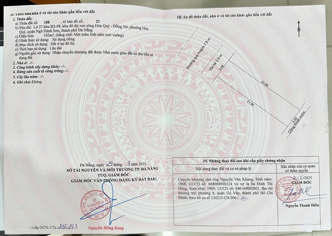 #NamhoaxuanduongHoikieng6Đặc điểm nổi bậtDiện tích :105m2Mặt tiền :5mGiá :5,55 tỷĐường vào :7.5m