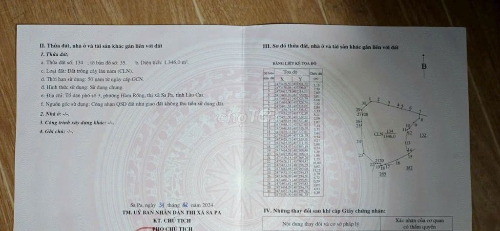 BÁN ĐẤT SUỐI HỒ SA PA, VIEW THOÁNG PHÁP LÝ CHUẨN, LIÊN HỆ XEM ĐẤT NGAY. - Diện tích: 1.346m², mặt tiền 1.000m, là đất trồng cây lâu năm, đầy đủ sổ đỏ - Khu vực Suối Hồ nổi tiếng với du lịch trải nghiệm bản dân tộc, ruộng bậc thang, studio ảnh cưới, trekking. Phù hợp mở homestay, farmstay, bungalow nghỉ dưỡng hoặc đầu tư giữ tài sản. - Gần quốc lộ, thuận tiện kết nối trung tâm bản du lịch. - Đường bê tông xe ô tô vào tận nơi - Hướng suối ôm chọn 1 quả đồi - Vị trí thuộc cung đường du lịch nổi tiếng, cách trung tâm 3 phút đi xe trải nghiệm văn hóa, lượng khách ổn định. Không có chỗ nào phong cảnh hữu tình như thế, do gia đình ở xa không khai thác tận dụng hết tiềm năng khu đất nên muốn bán cho người có nhu cầu khí hậu mát mẻ, vừa ở vừa có tiền. - GIÁ BÁN: 35 TỶ có thương lượng chính chủ(cơ hội đầu tư sinh lời cao) Liên hệ chính chủ sdt: có zalo MIỄN QUẢNG CÁO
