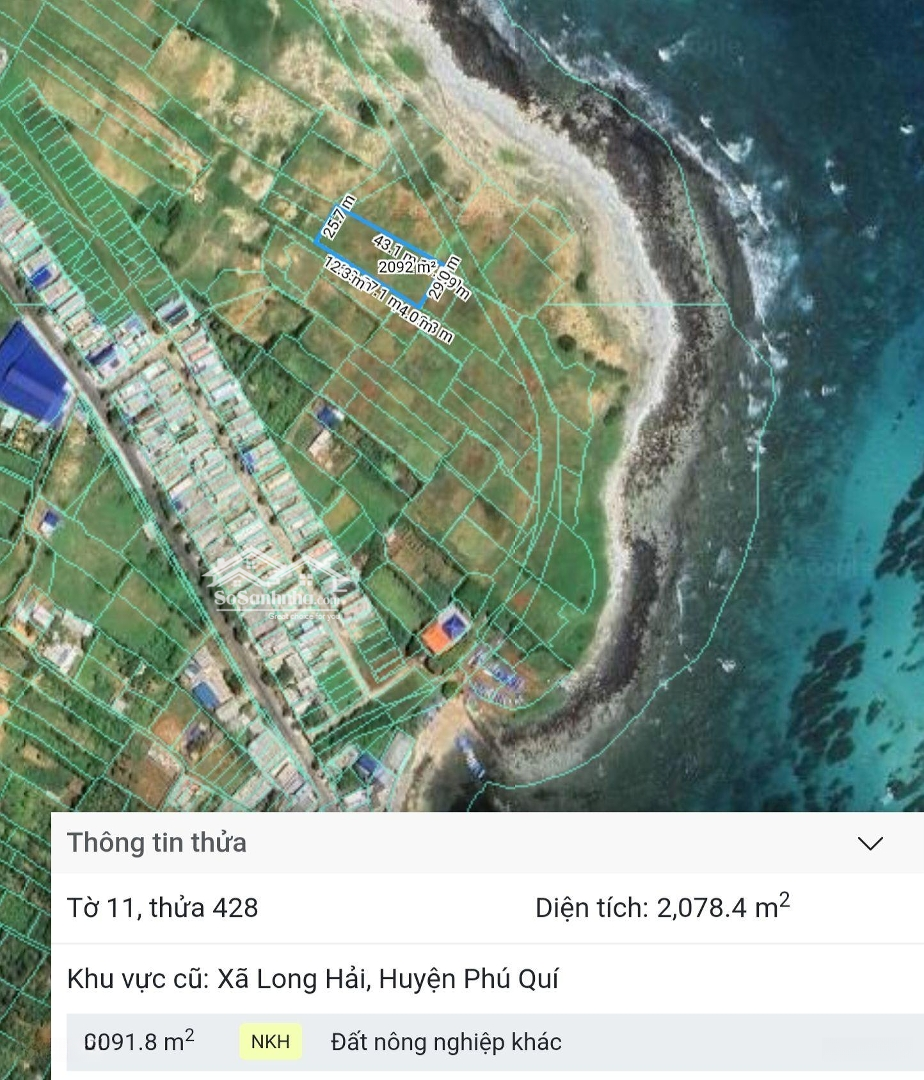 Bán đất Tại đường Nguyễn Thông, Xã Long Hải, đảo Phú Quý, Bình Thuận, Giá Cực Chất 6,2 Tỷ, 2078m2
