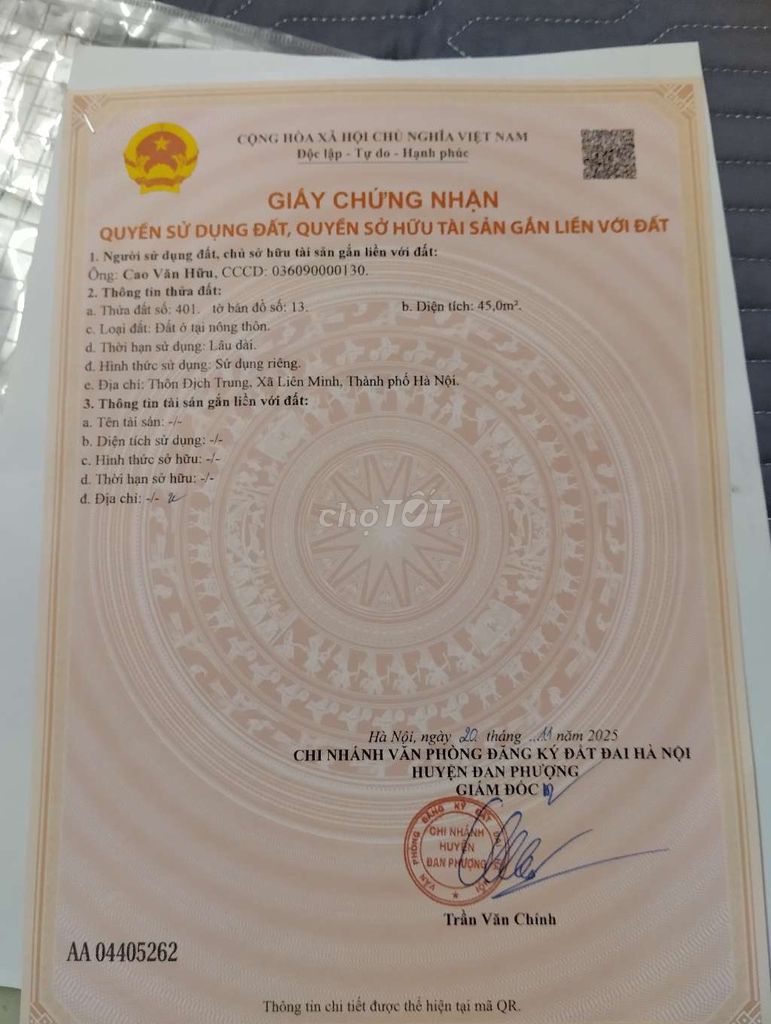 Hàng hiếm 45 mét thôn địch trung xã phương đình, huyện đan phượng, TP Hà Nội