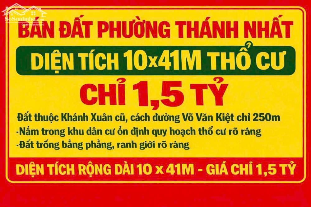 BÁN ĐẤT THỔ CƯ GIÁ TỐT – PHƯỜNG THÁNH NHẤT Diện Tích đẹp: 10 X 41m (~410m²), Thổ Cư 50m2 Thổ Cư 50m² – Pháp Lý Rõ Ràng Giá Bán: 1,5 TỶ
