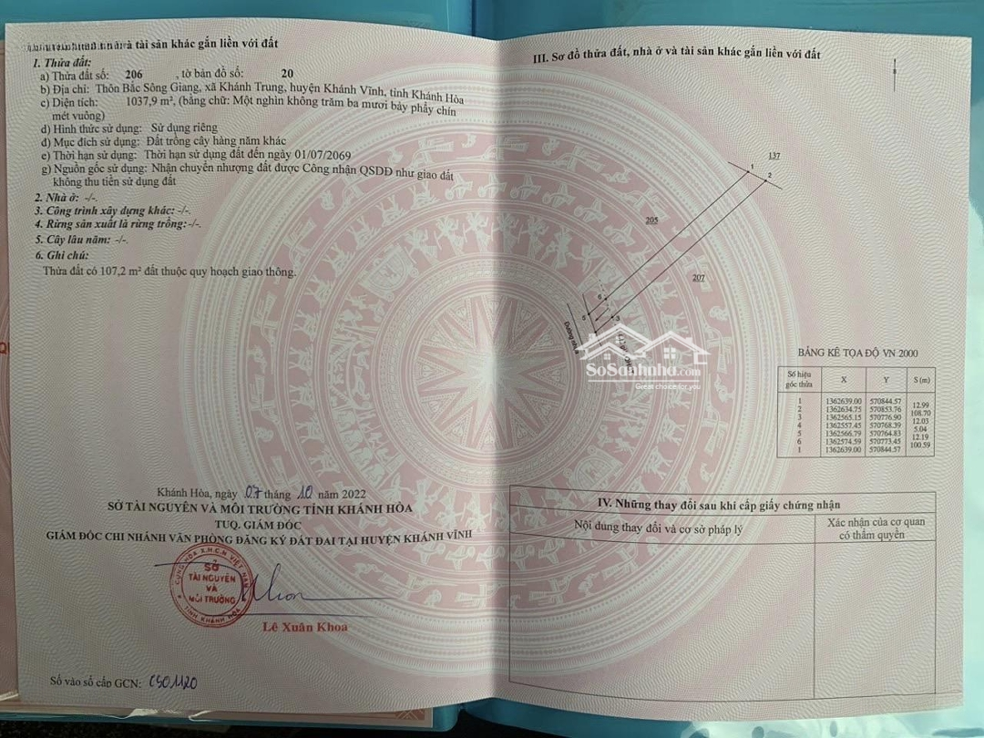 Bán gấp đất triền đồi vườn bưởi siêu đẹp - thích hợp xây biệt thự nghỉ dưỡng - chỉ 485 triệu. ----------- * Lô 1: 1068m2. * Lô 2: 1132m2. * Lô 3: 1038m2. * Sổ hồng trao tay, QH full thổ cư 100%. Khu dân cư đông đúc, có bưởi sẵn, chỉ cần thu hoạch. * Đường betong 6m QH mở rộng 30m. Gần TL8b, ngay khu vực nhiều trường học, uỷ ban, chợ,... * Địa chỉ: Xã Khánh Trung, huyện Khánh Vĩnh, Khánh Hoà. * Giá chỉ 485 tr/lô(còn bớt + bao sổ). ---------- Võ Văn Kỹ - BĐS Khánh Hoà Đặc điểm nổi bậtDiện tích :1132m2Mặt tiền :11mGiá :485 triệuĐường vào :6m