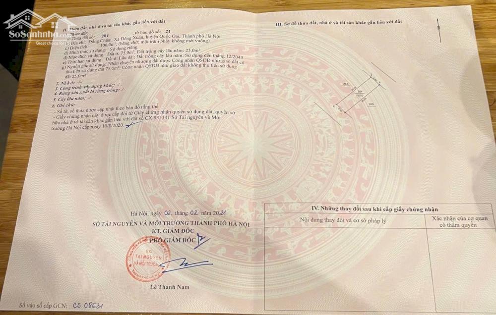 BÁN LÔ ĐẤT 2 MẶT TIỀN DT 100M2 TẠI ĐỒNG CHẰM ĐÔNG XUÂN GẦN TRƯỜNG SQ CHÍNH TRỊ VÀ ĐH QUỐC GIA, GIÁ HƠN 3 TỶ Diện tích: 100m2, đất ở 75m2, mặt tiền trước và sau đều 5m Vị Trí: Thôn Đồng Chằm, xã Đông Xuân, Quốc Oai, Hà Nội. Giao thông thuận tiện, đường bê tông rộng, oto đi lại thoải mái. Nằm gần trường VH nghệ thuật Quân đội và nhiều khu đơn vị quân đội khác. Cách đường cao tốc HN-HB khoảng 2.5km, cách khu CNC Hòa Lạc khoảng 4km, Lô đất quá đẹp để ở, hoặc đầu tư sinh lời, có thể bán lướt sau khi mua. Quý khách có nhu cầu xin liên hệ: em Phượng (sđt 0866990503) Văn phòng bất động sản PHÚC LÂM