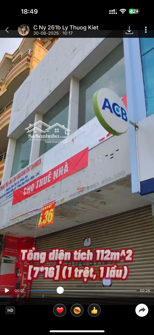 Bán Mt 261b Lý Thường Kiệt. 7x 16m. 2 Tầng. đối Diện đh Bách Khoa.lề đường 10m. Giá 65tỷ