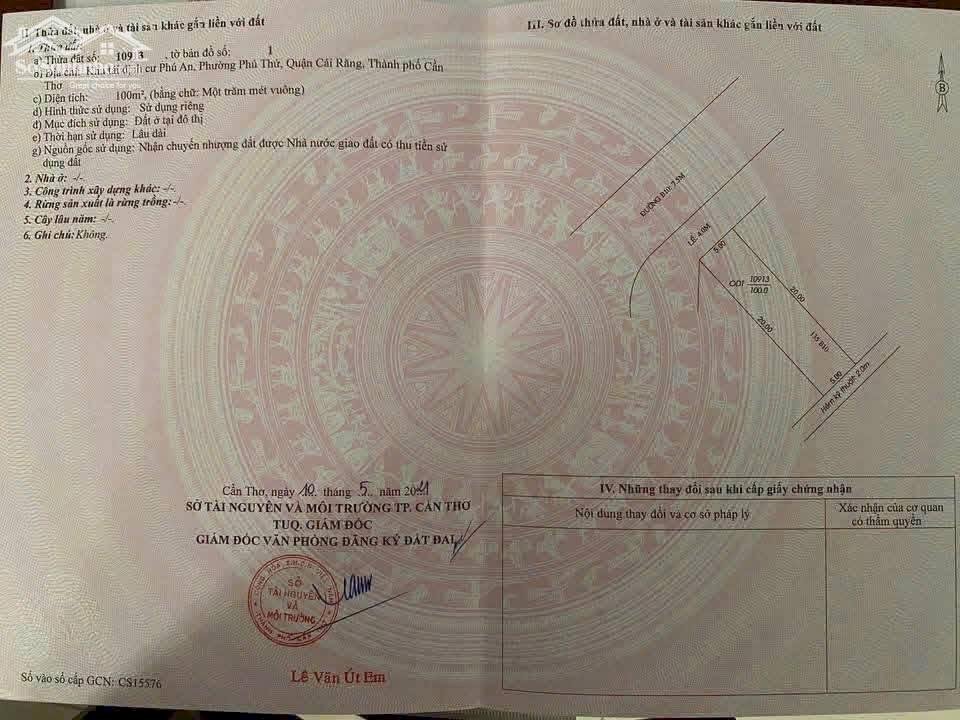 BÁN NỀN 135 ĐƯỜNG B10 KDC PHÚ AN - Dt: 5m x 20m = 100m2 - Hướng: Tây bắc - Lộ giới: lề 4m lộ 7m5 - Pháp lý: sổ hồng Giá : 2 tỷ 600 triệu tl LIÊN HỆ 0942495498 PHƯƠNG