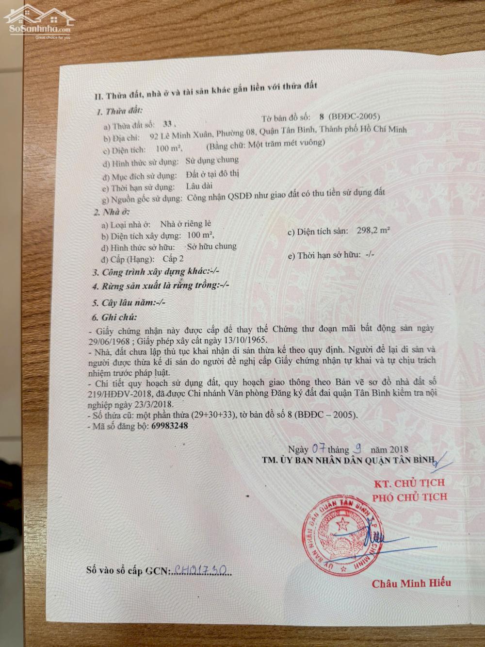 BÁN NHÀ 92 LÊ MINH XUÂN 4X25 NGAY MẶT CHỢ TÂN BÌNH-NGÃ 4 LÝ THƯỜNG KIỆT 41 TỶ CÒN 36,8 tỷ BÁN NHÀ 2 Mặt Tiền 92 Lê Minh Xuân 4X25 đoạn đẹp đối diện Chợ Tân Bình-Ngay Ngã 4 Lý Thường Kiệt chỉ 36,8 tỷ- hoa hồng 1% Ace nhận đủ - DT: 4x25 công nhận đủ 100m², vuông vức ko lỗi phong thuỷ, ko lộ giới, Vỉa hè gần 5m, đường nhựa 16m, hẻm sau nhà 3m thông thoáng - Kết cấu: trệt 2 lầu đúc, tiện dùng ngay hoặc xây mới 7 lầu, nhà đang cho thuê nên Ace đưa khách xem bên ngoài kín đáo tí đỡ làm phiền người thuê - Vị trí siêu Nét ngay chợ Tân Bình duy nhất 1 căn kêu bán, ngay góc ngã 4 Lý Thường Kiệt - Thích hợp để ở và kinh doanh vải và phụ liệu ngành may kinh doanh đa ngành nghề - Giá bán chỉ 36,8 tỷ thương lượng tí, duy nhất 1 căn kêu bán dãy đối diện chợ, thị trường 41 tỷ trở lên liên hệ trực tiếp Khương Tân Định sở hữu ngay- giá cả thương lượng trực tiếp chính chủ HH 1% Ace Môi Giới nhận đủ-push phụ mình tay