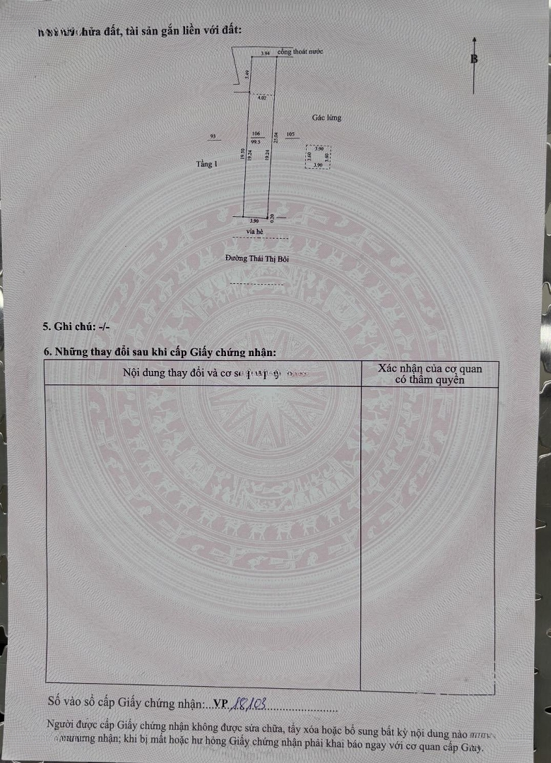 Bán đất tặng kèm nhà cấp 4 đường Thái Thị Bôi, phường Thanh Khê (phường Chính Gián cũ), thành phố Đà Nẵng. Vị trí: Đối diện chợ. Khu vực dân cư đông đúc, kinh doanh sầm uất. Gần sân bay, nhà ga, siêu thị, trường học, bệnh viện, công viên; gần bãi biển đường Nguyễn Tất Thành. Khu vực an ninh. Có thể ở, kết hợp kinh doanh hoặc cho thuê đều phù hợp. Đường trước nhà 7,5m, vỉa hè 4m. Diện tích đất: 3,90m x 25m=99,5m2 (nở hậu 3,94 m). Diện tích xây dựng: 110m2 (có gác lửng). Đã có sổ hồng. Hướng chính Nam. Liên hệ chú Minh (chính chủ) Số ĐT: . Để lại tin nhắn zalo, sms... Chủ nhà sẽ liên hệ lại.Đặc điểm nổi bậtDiện tích :99.5m2Mặt tiền :3.9mGiá :9,7 tỷSố tầng :1 tầngPhòng ngủ :2 phòngPhòng tắm :2 phòngĐường vào :7.5m