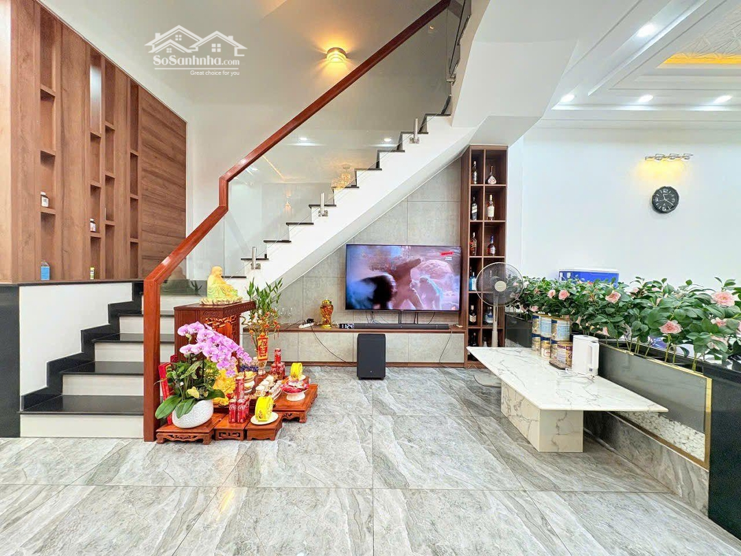 [ VIP] KHU VIP NHÀ BÈ - GREEN RIVERSIDE Lợi ích thực tế khi sở hữu nhà trong khu nhiều cây lộc vừng: Con đường xanh mát quanh năm, không gian sống an lành Nhiều gia đình thành đạt chọn sống tại đây vì hợp phong thủy vượng khí. Vị trí: Hùynh Tấn Phát, Nhà Bè cách Phú Mỹ Hưng 15p. Metro 10p. Mô tả : Hẻm MT nội khu 8m xe hơi thông nhau ,nội thất cơ bản hiện đại, khu an ninh, thoáng mát, khu quy hoạch đồng bộ, không ngập.Không quy hoạch. Diện tích: 80m2 Kết cấu: 1 trệt 2 lầu, 4 PN, 5WC Pháp lý : SHR , công chứng ngay Giá bán : 9,999 TỶ Xem nhà thật tế để thấy những ưu điểm của nhà.Đặc điểm nổi bậtDiện tích :80m2Mặt tiền :5mGiá :10 tỷSố tầng :4 tầngPhòng ngủ :4 phòngPhòng tắm :5 phòngĐường vào :8m