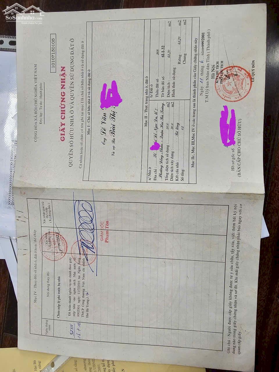 Bán Nhà Gần Hồ Hai Bà Trưng , DT: 44m2 , Xây 36m2 X 6 Tầng