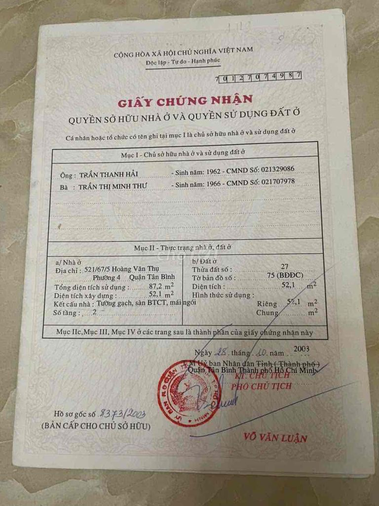 Nhà Hoàng Văn Thụ , quận Tân Bình , ngay trung tâm , gần sân bay , bệnh viện Thống nhất , xung quanh trường mầm non đến cấp 3. thuận tiện di chuyển đi các quận . Liên hệ chị Liên ***