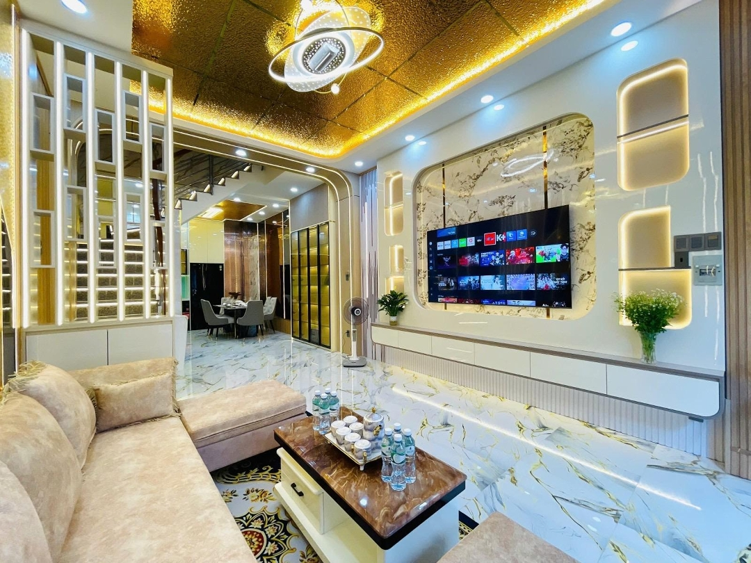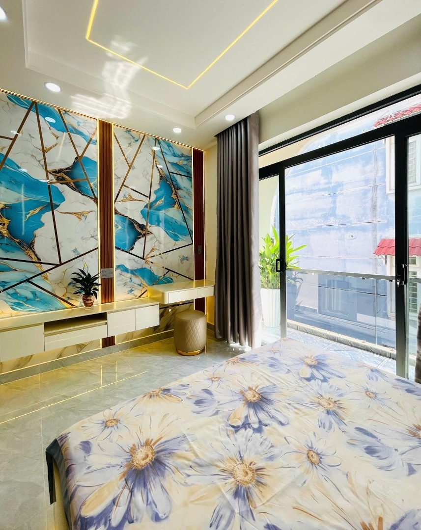 *** Vị trí đẹp Huỳnh Văn Nghệ P.15 Tân Bình, hẻm xe hơi thông, thuận tiện ra Phan Huy Ích Trần Thái Tông Phạm Văn Bạch, khu dân cư ổn định. ** Hẻm ô tô thông thoáng, xe vào tận nhà, phù hợp vừa ở vừa kinh doanh hoặc khai thác dòng tiền. _ Nhà mới sửa hoàn thiện, kết cấu trệt + 2 lầu + sân thượng, tổng 4PN + 1 phòng thờ + 5WC. _ Full nội thất cao cấp, khách mua chỉ việc xách vali vào ở, không tốn thêm chi phí. - Diện tích ~50m, nhà vuông vức, bố trí công năng hợp lý, không gian thoáng sáng. Sổ hồng vuông A4 hoàn công đủ, pháp lý chuẩn, công chứng nhanh.Đặc điểm nổi bậtDiện tích :50m2Giá :7,99 tỷSố tầng :4 tầngPhòng ngủ :5 phòngPhòng tắm :5 phòng