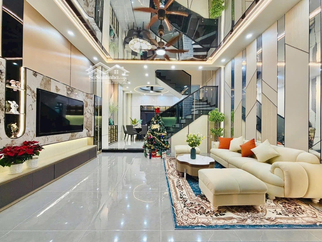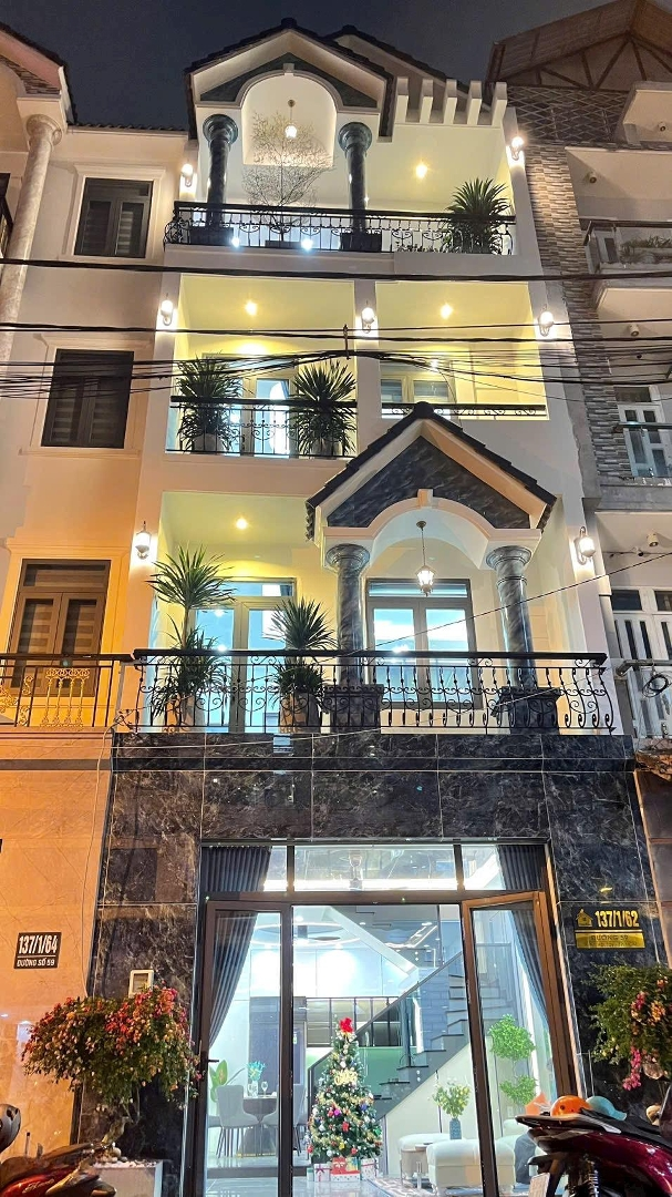 Kết cấu : 1 trệt 3 lầu 4pn 5wc 1pk 1pb san thượng lắp đặt FUll nội thất đẹp sang trọng