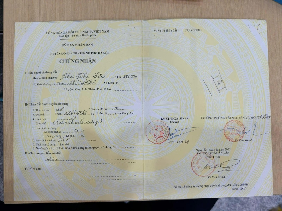Mô tả: Ngôi nhà riêng này nằm ở Lỗ Khê, Xã Liên Hà, Đông Anh, Hà Nội, với diện tích 61m2, cực kỳ thoáng đãng và rộng rãi. Nhà 2 tầng, 3PN và 2WC, phù hợp cho gia đình trẻ hoặc nhóm bạn muốn tìm không gian sống thoải mái. - Nội thất cơ bản, sẵn sàng cho việc dọn vào ở ngay. - Mặt tiền 9,5m, ngõ rộng 7m, rất dễ dàng cho việc di chuyển và có thể kinh doanh tại nhà. - Pháp lý đầy đủ, đảm bảo an tâm cho người mua. - Không gian sống yên tĩnh, phù hợp với phong thủy, tốt cho sức khỏe và tài lộc. Chốt lại, nếu đang tìm kiếm một nơi ở đẹp, đầy đủ tiện nghi và thuận lợi, đừng bỏ lỡ cơ hội này. Liên hệ ngay với Le Van Phong qua số để biết thêm chi tiết!Đặc điểm nổi bậtDiện tích :61m2Mặt tiền :9.5mGiá :5,45 tỷSố tầng :2 tầngPhòng ngủ :3 phòngPhòng tắm :2 phòngĐường vào :7m