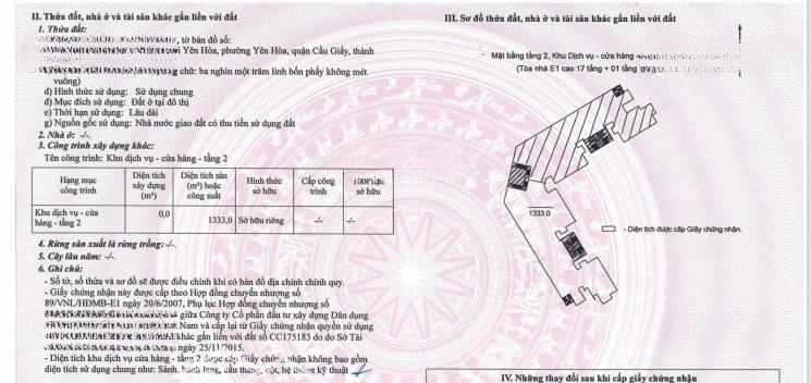 Cần bán sàn thương mại 1.333m² tại mặt phố Trung Kính. Thông tin chi tiết: - Tòa nhà Chelsea Park mặt phố Trung Kính. - Vị trí: Mặt phố Trung Kính đôi, nằm tại ngã tư Trung Kính - Mạc Thái Tổ. - Diện tích: 1.333m2 (nửa sàn) Hoặc 2.666 m2 (cả sàn). - Công năng: Sản phẩm phù hợp với nhiều loại/mô hình kinh doanh. - Hiện trạng: Đang cho nhiều đơn vị khác nhau thuê với dòng tiền đều và ổn định 600tr/tháng. - Pháp lý: Sổ đỏ lâu dài. - Giá bán: 114,9 tỷ. (*) Lưu ý: Khách hàng có thể tùy chọn mua nửa sàn Hoặc cả sàn. (*) Liên hệ xem mặt bằng, tư vấn và giao dịch qua SĐT: Đặc điểm nổi bậtDiện tích :1333m2Mặt tiền :50mGiá :114,9 tỷ