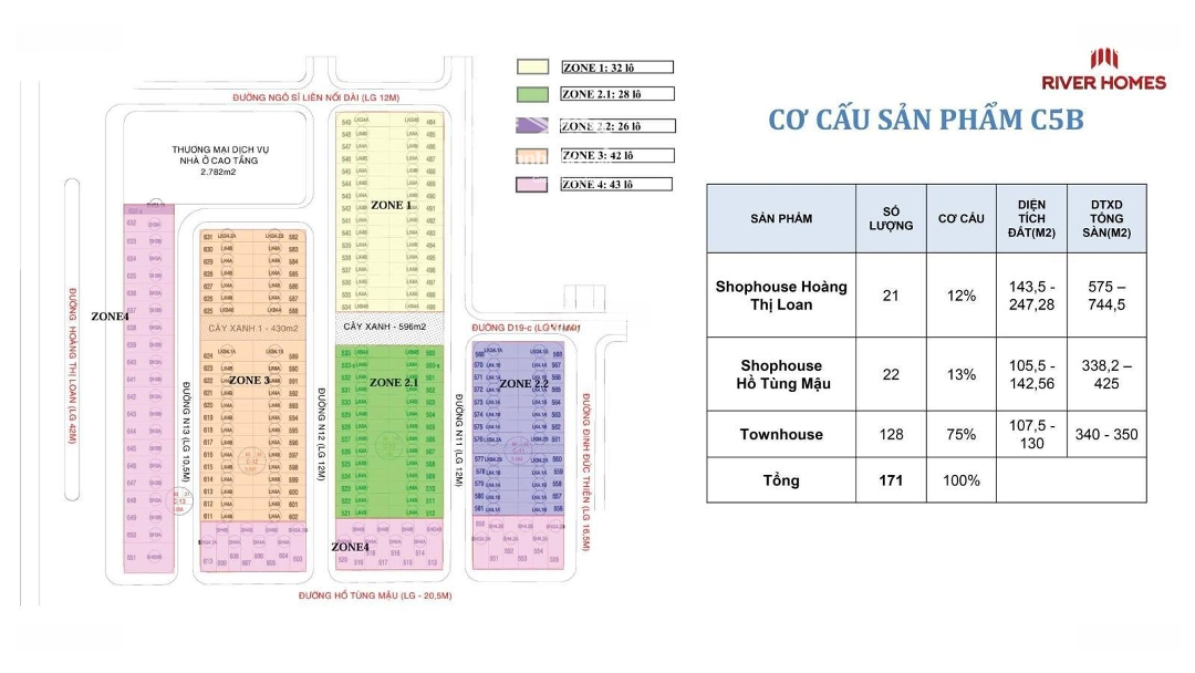 Quy mô: 28,713m² với 171 căn nhà phố và shophouse. Vị trí chiến lược kết nối nhanh các khu vực trọng điểm. Nằm ngay trục đường Hoàng Thị Loan và Hồ Tùng Mậu (trục thông ra biển Nguyễn Tất Thành). Liền kề trục giao thông trọng điểm. Hưởng lợi trực tiếp từ cảng Liên Chiểu & khu công nghiệp quy hoạch đồng bộ, hạ tầng hoàn chỉnh. Giá đợt 1 rất tốt, nằm trong khu vực phát triển mạnh. Sở hữu lâu dài. Thông tin sản phẩm đợt 1 mở bán: Shophouse Hoàng Thị Loan: DT 5x21.5m. Shophouse Hồ Tùng Mậu: - Số tầng: 4 tầng. - Diện tích: 5x21.1m và 6x21.56m. Ưu đãi thanh toán: Chiết khấu booking sớm 1%. Vào 15% ký HĐMB. Bank hỗ trợ 70%, miễn lãi 18 tháng và ân hạn gốc lên đến 60 tháng. Chiết khấu thanh toán cho khách hàng không vay 10%.Đặc điểm nổi bậtDiện tích :107.5m2Mặt tiền :5mGiá :12 tỷSố tầng :4 tầngĐường vào :10.5m