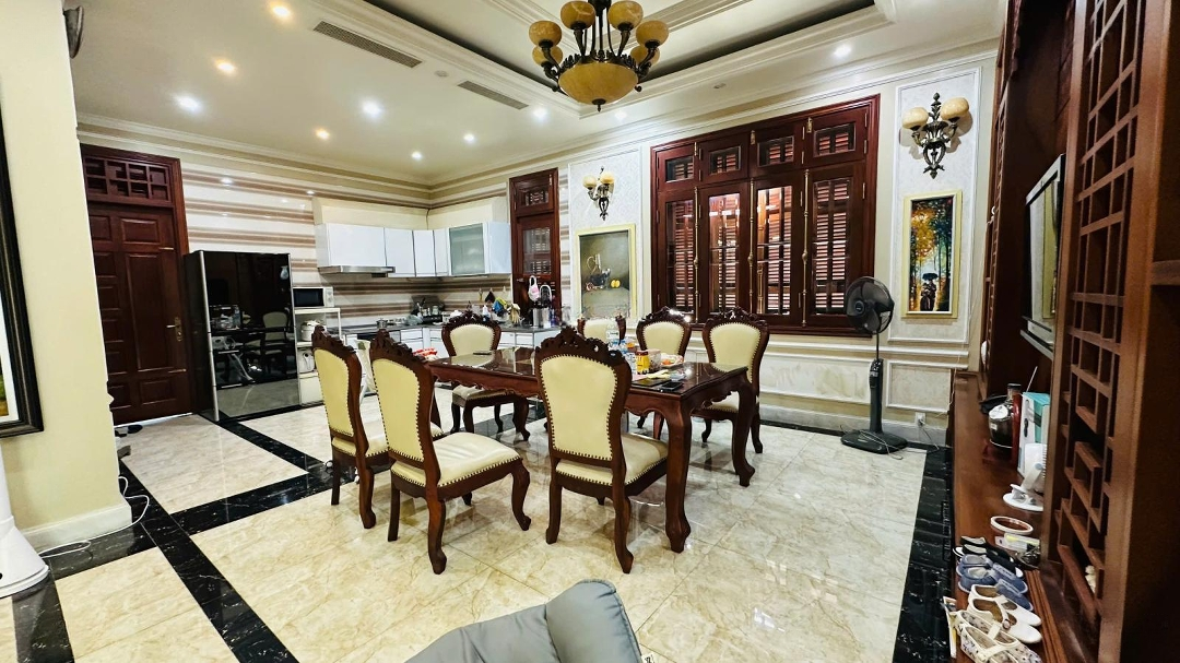 * Diện tích 478,6m2 - mặt tiền hơn 16m * Đất vuông vắn - 2 mặt tiền trước sau * Hướng Nam - Bắc * Biệt thự 2 tầng, sân vườn rộng rãi, mát mẻ. Nhà đẹp với sàn, cửa, cầu thang gỗ, nội thất nhập khẩu, hiện đại. Thiết kế: 4 PN, 5WC, phòng khách, bếp, phòng thờ, sân phơi. Chủ để lại toàn bộ nội thất. * Đường trước nhà rộng rãi, có vỉa hè, thoáng mát. Khu phân lô ô bàn cờ, hạ tầng đầy đủ * Gần NOXH PG Aura đang xây dựng, khu dân cư, Bệnh viện Việt Tiệp 2, chợ, siêu thị, tiện ích đầy đủ * Giá 30 tỷ (thoả thuận) LH: Mr. Hưng: Zalo/Phone). ------------------------------------------------ (Công ty BĐS Diễm Châu Land - Số 207 Hàng Kênh, Lê Chân, Hải Phòng. Truy cập website: Diemchauland.com hoặc kết bạn Zalo để tham khảo thêm rất nhiều nhà đất cần bán).Đặc điểm nổi bậtDiện tích :478.6m2Mặt tiền :16.5mGiá :30 tỷSố tầng :2 tầngPhòng ngủ :4 phòngPhòng tắm :5 phòngĐường vào :13.7m
