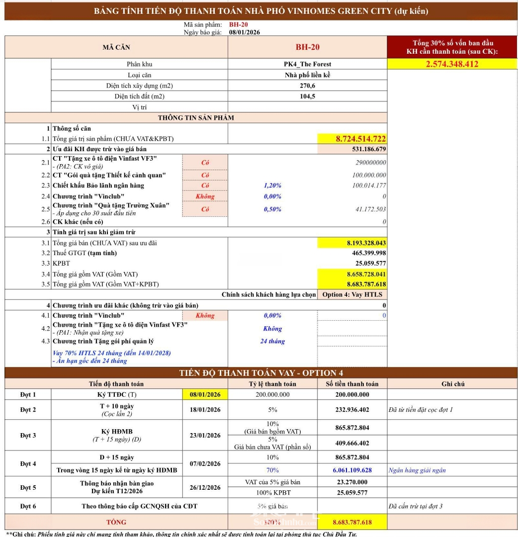 Căn Góc 2 Mặt đường 3/2 Vinhomes Green City. Tuyến Trung Hoa, 105 M2 Xd 270 M2. Ck 21%, Tặng Xe Vf3