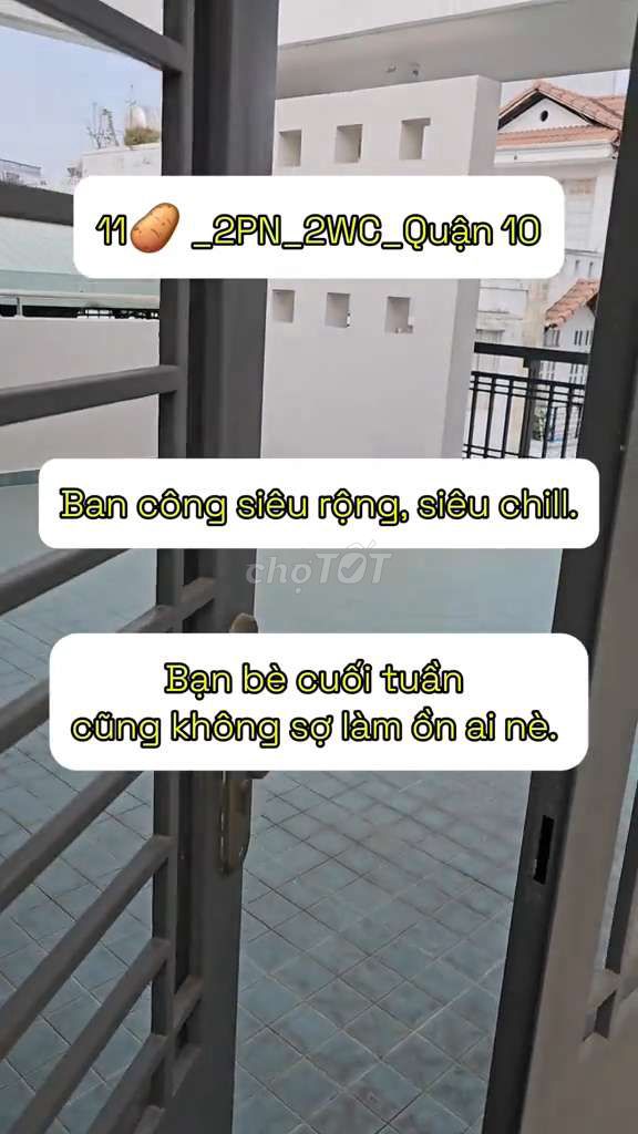 ** CĂN HỘ 2PN - QUẬN 10 - 11tr** - Địa chỉ: đường Nguyễn Giản Thanh, Phường 15, Quận 10, TP.HCM - Diện tích: 77m2 - Bao gồm: 2 phòng ngủ, 2 WC, bếp,... CHDV, PCCC công năng đầy đủ - Căn hộ rộng rãi, thoáng mát, có sẵn 2 máy lạnh - Điện 4000/kwh - Khu dân cư an ninh tuyệt đối, bảo vệ 24/24 - Giao thông thuận tiện đi lại, xung quanh có nhiều tiện ích khác nhau như: gần BigC Tô Hiến Thành, Đại học Huflit, Bệnh viện 151,... - Ưu tiên khách thuê lâu dài. GIÁ THUÊ: 11 triệu/tháng => LIÊN HỆ TRỰC TIẾP: zalo