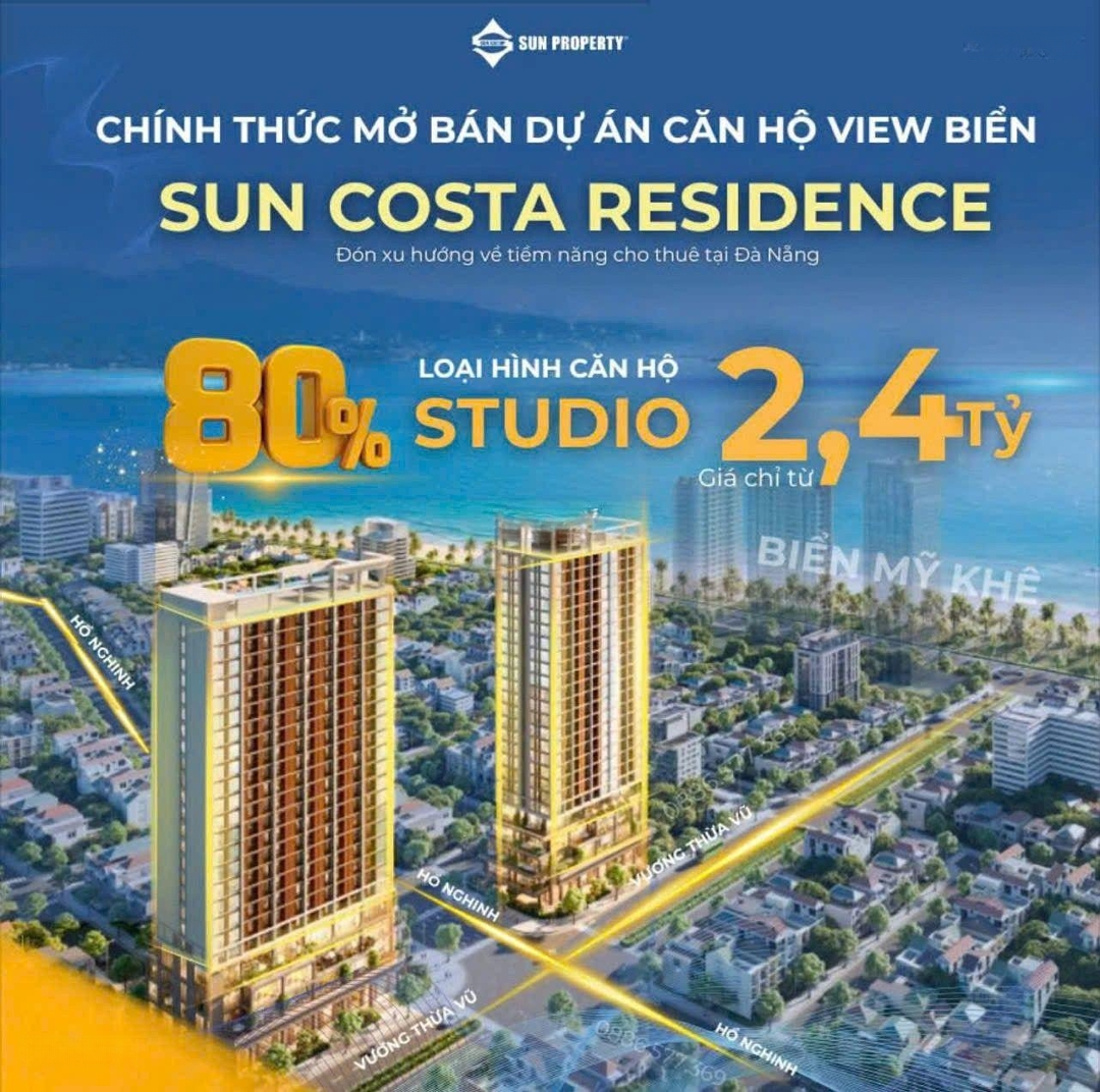 Sun Group - RA MẮT tháp đôi SUN SEA TOWER Vương Thừa Vũ - Đà Nẵng. - Cách biển Mỹ Khê 200m - Cho thuê 18-25tr/tháng - 5 tầng thương mại tiện ích - 80% căn studio ưa chuộng Vị trí: Góc Vương Thừa Vũ - Hồ Nghinh, quận Sơn Trà, TP Đà Nẵng. Cách 1 phút di chuyển thẳng ra biển. Quy mô: diện tích đất 4000 m2 với 25 tầng. Gồm hai tòa căn hộ A1 và A2. Loại hình căn hộ: Studio - 1PN - 2PN, thích hợp làm second home, nghỉ dưỡng, cho thuê, air bnb Số lượng sản phẩm: Chỉ 560 căn LH:0905994077- Ms.Liên booking ngay hôm nay. #SunGroup #Canhobien #CanhoVuongThuaVu #BienMyKheĐặc điểm nổi bậtDiện tích :32 m²Giá :Thỏa thuậnPhòng ngủ :1 phòngPhòng tắm :1 phòngHướng nhà :Đông
