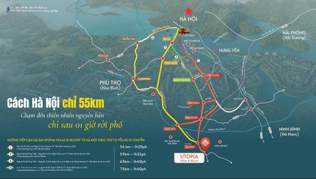 Biệt thự ven hồ giá F0 chỉ từ 36 triệu/m2 - sở hữu lâu dài. Utopia Villas & Resort - Biệt thự nghỉ dưỡng mặt hồ - Đất ở lâu dài - Cách Hà Nội ~60 phút. Ưu đãi đặc quyền cho 50 khách hàng đầu tiên: - Chiết khấu thêm 1,5% khi thanh toán sớm. - Tổng chiết khấu lên tới 12%. - Miễn phí vận hành 2 năm đầu. - Khai thác cho thuê hấp dẫn: Doanh thu dự kiến 7 - 12 triệu/đêm, dòng tiền ổn định, tiềm năng tăng giá vượt trội. Sản phẩm giới hạn: - Dinh thự Tổng Thống: 2.000m. - Villa đơn lập & song lập: 150 - 300m2. - Shophouse thương mại: 112m2. - Pháp lý: Đất ở lâu dài Sổ Đỏ từng lô. Tiềm năng nghỉ dưỡng. Gần Hà Nội cách trung tâm Thủ đô chỉ ~11,5 giờ di chuyển là một lợi thế lớn cho nghỉ dưỡng ngắn ngày và khai thác lưu trú. Kết nối vùng du lịch: Thu hút khách từ các tỉnh miền Bắc và du khách quốc tế nhờ vị trí gần các điểm tham quan lớn. Inbox ngay cho em để nhận: - Bảng giá chi tiết. - Mặt bằng từng phân khu. - Chính sách ưu đãi mới nhất. Liên hệ: Đặc điểm nổi bậtDiện tích :150m2Mặt tiền :10mGiá :5,4 tỷĐường vào :15m