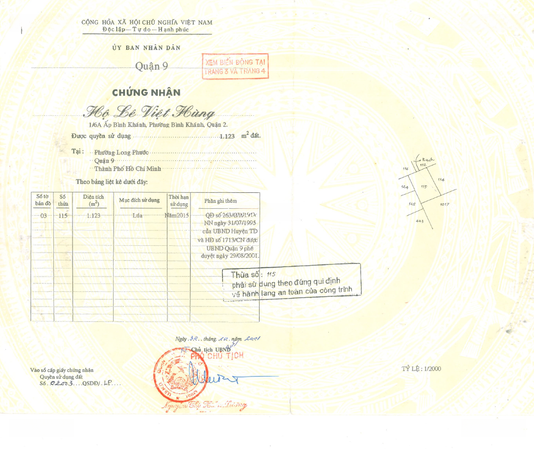 Chính chủ bán đất vườn tại Phường Long Phước, Quận 9, TP. HCM, diện tích 1123m2, giá 15 triệu/m² có thỏa thuận. Thông tin: + Diện tích 28 x 40m (1.123 m2). + Sổ hồng đầy đủ. Ưu điểm: + Vị trí thuận lợi, pháp lý đầy đủ. + Không gian thoáng đãng, đất phù hợp làm Du lịch sinh thái, vườn tược, nhà ờ... + Gần khu quần thể Đền Thờ Tổ Nghiệp - Tâm Linh Việt. Liên hệ để biết thêm thông tin chi tiết qua số điện thoại - Lê Quang Minh.Đặc điểm nổi bậtDiện tích :1123m2Giá :16,85 tỷ
