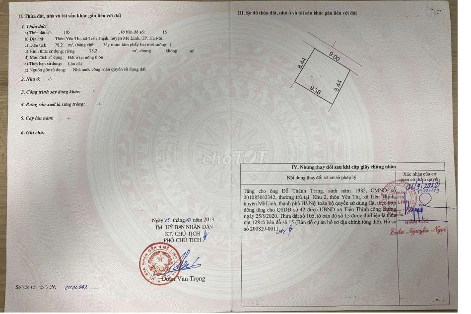 CHÍNH CHỦ BÁN ĐẤT TẠI XÃ TIẾN THỊNH, MÊ LINH, HÀ NỘI.