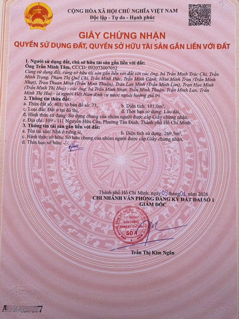 Chính chủ bán gấp nhà 109 - 111 Nguyễn Hữu Cầu, phường Tân Định, Quận 1 TPHCM (Vị trí đắc địa ngay chợ Tân Định và là tuyến phố mệnh danh bán vàng nổi tiếng Quận 1): - Diện tích: 8m x 25m công nhận 191m2. - Hiện trạng: Nhà 3 Tầng. - QHXD: Hầm 8 Tầng. - Pháp lý nhà chính chủ lâu đời chưa qua đầu tư. - Giá bán: Inbox để nhận báo giá chính xác từ chủ nhà! - Tin thật 100%, nói không tin ảo và làm việc chính chủ! - LH: Thịnh Nguyễn MTG).Đặc điểm nổi bậtDiện tích :191m2Mặt tiền :8mGiá :Giá thỏa thuậnSố tầng :3 tầngPhòng ngủ :6 phòngPhòng tắm :6 phòngĐường vào :30m