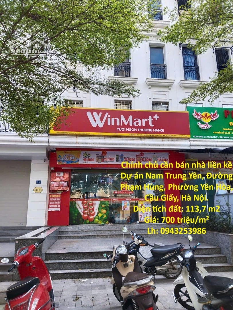 Chính chủ cần bán nhà liền kề khu đô thị Nam Trung Yên, phường Yên Hòa, quận Cầu Giấy, Hà Nội Địa chỉ: Dự án Nam Trung Yên, Đường Phạm Hùng, Phường Yên Hòa, Cầu Giấy, Hà Nội Khu vực dân trí cao, hạ tầng đồng bộ, vị trí trung tâm. Thông tin pháp lý chuẩn sổ đỏ. Diện tích đất: 113,7 m2.lh*943253986 Giá: 700 triệu/m² Hình thức sử dụng: Sử dụng riêng 100%. Mục đích sử dụng: Đất ở đô thị. Thời hạn sử dụng: Lâu dài. Nguồn gốc: Nhà nước giao đất có thu tiền sử dụng đất. Thông tin nhà ở.lh*943253986 Loại nhà: Nhà liền kề. Diện tích xây dựng: 73,8 m². Tổng diện tích sàn: 341,2 m. Kết cấu: 5 tầng gồm 6 phòng ngủ - 7wc. Hiện tại dòng tiền đang cho Winmart thuê Nhà chắc chắn, vuông vắn, phù hợp ở, làm văn phòng, cho thuê. Vị trí & tiện ích. Nằm trong khu đô thị Nam Trung Yên, đường rộng, vỉa hè thoáng. Gần Keangnam, Big C Thăng Long, Trung Kính, Duy Tân. Kết nối nhanh Trần Duy Hưng Phạm Hùng vành đai 3. Khu vực an ninh tốt, dân trí cao, rất hiếm nhà bán. Giá bán: Thỏa thuận. Pháp lý rõ ràng giao dịch nhanh gọn. Liên hệ*943253986 (Chính chủ / môi giới uy tín).Đặc điểm nổi bậtDiện tích :113.7m2Giá :79,6 tỷSố tầng :5 tầngPhòng ngủ :6 phòngPhòng tắm :7 phòng