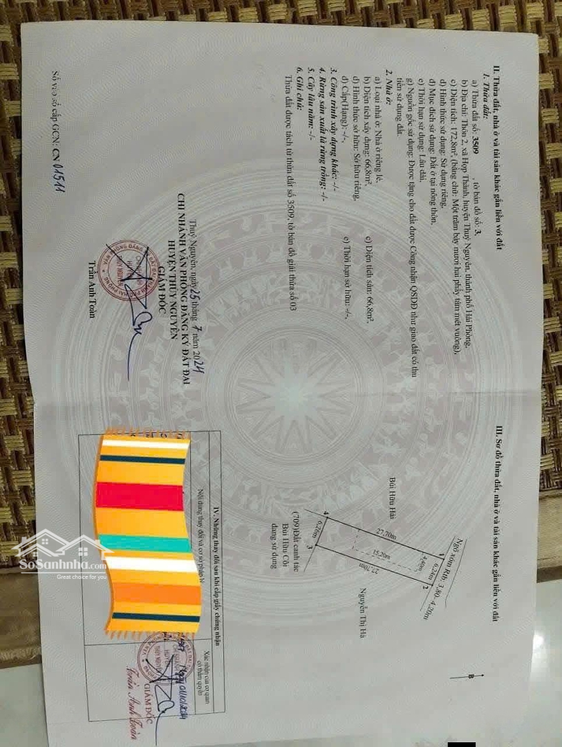 Chính Chủ Gửi Bán Lô đất 174m Hợp Thành Thủy Nguyên, Sẵn Nhà- Giá Chỉ 1.x Tỷ