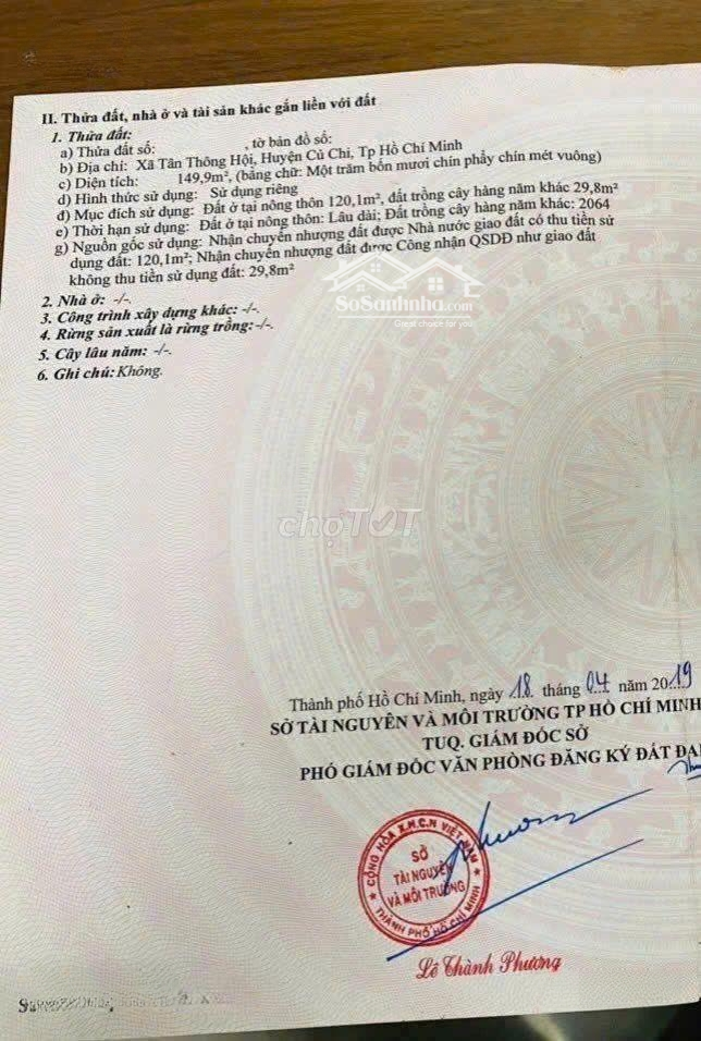 Quan tâm liên hệ sdt: Đặc điểm nổi bậtDiện tích :149m2Giá :850 triệu