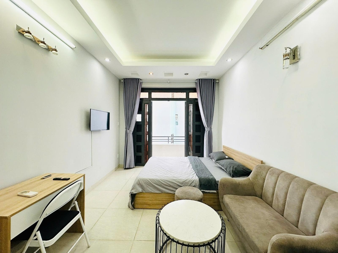 Cho thuê căn hộ 1PN, rộng 35m², full nội thất cao cấp, có ban công thoáng mát, giờ giấc tự do, không chung chủ, gần các trung tâm thương mại lớn - Nội thất: + Hệ thống tủ bếp lớn, bếp từ, bàn ăn,... + Giường, nệm, tủ quần áo, kệ sách, rèm cửa, sofa. + Máy giặt, tủ lạnh, máy lạnh, Tivi,... Khóa cửa vân tay tân tiến. + Đèn và thiết bị vệ sinh cao cấp. - Tình trạng nội thất: Sử dụng tốt. - Giá thuê: 9.5 triệu/ tháng. - Chi phí khác: Điện, nước có đồng hồ riêng, tính theo đơn giá nhà nước.Đặc điểm nổi bậtDiện tích :35m2Giá :9,5 triệu/thángPhòng ngủ :1 phòngPhòng tắm :1 phòng