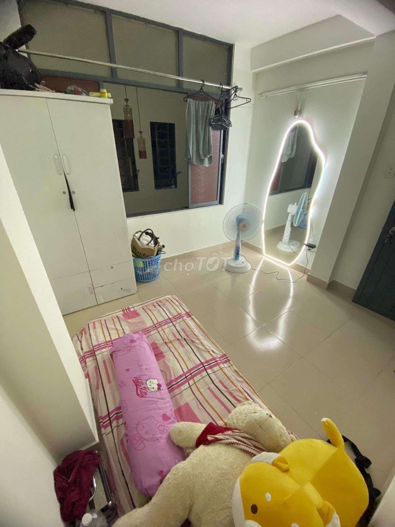 Nhà nguyên căn có các tiện ích sau: - Trệt: chỗ để xe (để được tầm 5-6 xe), bếp, WC. - Tầng lửng: 1PN nhỏ. - Tầng 1: 1PN (WC) + gác đúc lửng chứa đồ + ban công. - Tầng 2: 1PN (WC) + gác đúc lửng chứa đồ + ban công. - Sân thượng: có sẵn máy giặt dùng chung, chỗ phơi đồ rộng rãi (ngoài trời + mái che cho mùa mưa), view sân thượng bên cạnh các tòa nhà cao tầng khá chill, có thể BBQ ngoài trời hoặc cà phê sân thượng. - Sân thượng lửng: có thể trồng cây hoặc để đồ. Nhà còn trống 1 phòng Tầng Lửng giá 3.000.000đ/tháng, điện – nước giá nhà nước nên rất rẻ, khu vực tầng trệt với sân thượng dùng chung, bạn cùng nhà vui vẻ thân thiện, hiện đã có 3 thành viên. Giờ giấc tự do. Nhà ở hẻm 68 Đoàn Văn Bơ, P9, Q4 (cạnh cầu Calmette) Vị trí thuận lợi đi các Q1,3,5,7,8,10. Đặc biệt qua Chợ Bến Thành 5p. - Cách Trường ĐH Nguyễn Tất Thành, CĐ Văn Hóa Nghệ Thuật Quân Đội,... chỉ khoảng 900m. - Bán kính 600m có Khu ẩm thực, Nhà Thờ, Bệnh Viện,... Lưu ý: chỉ cho nữ thuê. Ưu tiên HSSV, NVVP. Liên hệ để biết thêm chi tiết.