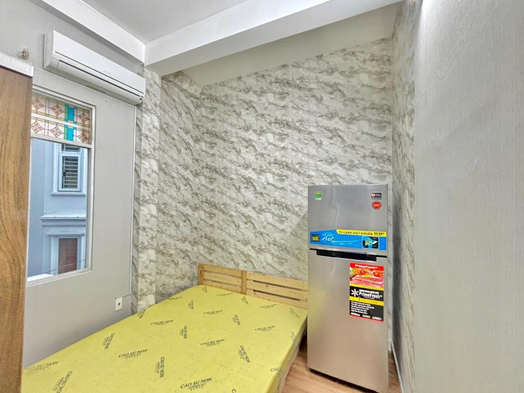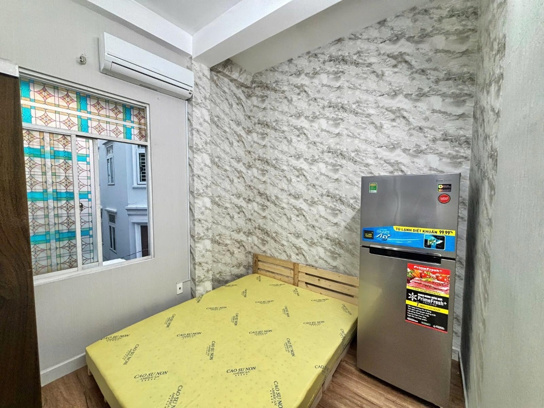 - phòng nhỏ có cửa sổ (lầu2): máy lạnh,tủ quần áo,tủ lạnh,gường nệm,toilet riêng,máy giặt chung trên sân thượng.4.5triệu