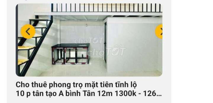 Cho thue phòng trọ mặt tiền đường tĩnh lô 10. Dt 10m²giá 1 triêu