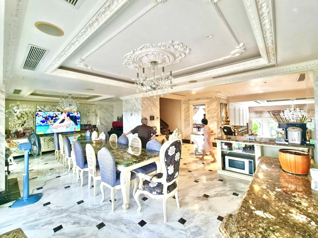 BIỆT THỰ HIỆN ĐẠI TÂN CỔ ĐIỂN LÔ Q 400m Khám phá không gian sống đẳng cấp, nơi hội tụ tinh hoa của phong cách tân cổ điển và công nghệ hiện đại. Biệt thự Lô Q rộng 400m, được thiết kế dành riêng cho giới siêu sang trọng với đầy đủ các tiện ích cao cấp, mang lại sự đẳng cấp và thoải mái tối đa cho gia đình bạn. * Đặc điểm nổi bật: Diện tích và cấu trúc: 400m sử dụng thông minh, với 6 phòng ngủ rộng rãi và 2 bếp được bố trí hợp lý, phục vụ mọi nhu cầu sinh hoạt gia đình. * Nội thất Tân cổ điển: Phong cách trang nhã, tinh tế kết hợp giữa nét truyền thống và hiện đại, tạo nên không gian sống ấm cúng và đẳng cấp. Công nghệ thông minh: Hệ thống thang máy Mitsubishi hiện đại, thiết bị điện Honeywell được tích hợp điều khiển tự động: rèm, nóng lạnh, loa âm trần... đảm bảo sự tiện nghi và an toàn. * Tiện ích nội tại đa năng: Tầng hầm: Bếp ướt, khu giặt là, phòng kỹ thuật, phòng giúp việc, gara để 2 ô tô, kho chứa và sân vườn trước sau, giúp tối ưu hoá không gian sử dụng và phục vụ mọi nhu cầu gia đình. * Phòng rượu: Khu vực riêng biệt dành cho những buổi tiệc hoặc sự kiện đặc biệt, làm nổi bật phong cách sống thượng lưu. Tầng 1: Phòng khách VIP, phòng ăn hiện đại, khu bếp khô tiện nghi, toilet và một phòng khách riêng tạo nên không gian đón khách sang trọng. Tầng 2: 2 phòng ngủ với ban công thoáng đãng và một thư viện yên tĩnh nơi lý tưởng để thư giãn và học tập. Tầng 3: 3 phòng ngủ thông thoáng, mỗi phòng đều có ban công riêng, đem đến sự thoải mái cho từng thành viên trong gia đình. Tầng 4: Phòng thờ trang nghiêm và khu tiếp khách rộng rãi có sức chứa lên đến 50 người, phù hợp cho các buổi lễ, tiệc cưới hay họp mặt gia đình. Tầng 5:Vườn trên cao xanh mát, mở ra không gian ngoài trời lý tưởng cho các hoạt động giải trí và thư giãn. * Giao thông thuận tiện: Nằm trong khu đô thị hiện đại với hệ thống giao thông đa dạng, giúp kết nối nhanh chóng đến các khu vựcĐặc điểm nổi bậtDiện tích :400m2Mặt tiền :12mGiá :150 tỷSố tầng :5 tầngPhòng ngủ :5 phòngPhòng tắm :8 phòngĐường vào :20m