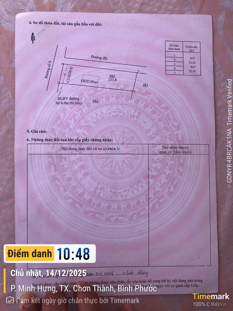 - Bạn đang tìm kiếm một tài sản đầu tư có tiềm năng tăng giá vượt trội, hay một lô đất lý tưởng để xây dựng tổ ấm? Đừng bỏ lỡ lô đất nền tại Phường Minh Hưng, Thị xã Chơn Thành tâm điểm phát triển công nghiệp và kinh tế của Bình Phước! - Vị trí kim cương kết nối thuận tiện. Phường Minh Hưng, Thị xã Chơn Thành, Bình Phước cũ, nay là Tỉnh Đồng Nai mới. - Gần các trục đường huyết mạch: Chỉ cách Quốc lộ 13 (tuyến đường xương sống kết nối TP. HCM Bình Dương Bình Phước) vài phút di chuyển. - Khu vực phát triển: Nằm trong khu vực có tốc độ đô thị hóa nhanh, liền kề các khu dân cư và công nghiệp lớn (như Khu Đô thị Phúc Hưng Golden và các KCN lân cận). - Tiện ích: Dễ dàng tiếp cận các tiện ích sinh hoạt, chợ, trường học trong khu vực Minh Hưng. - Pháp lý vững chắc an tâm sở hữu. Sổ hồng riêng (Giấy chứng nhận quyền sử dụng đất) công chứng sang tên ngay! Thông tin chi tiết lô đất (Theo GCN): - Thửa đất số: 980. - Tờ bản đồ số: 19. - Tổng diện tích: 273,8 m2. - Loại đất: Đất ở tại đô thị (ODT) 39,0 m2 + - Đất trồng cây lâu năm (CLN) 234,8 m2. - Mục đích sử dụng: Đã có đất thổ cư, thuận lợi cho việc xây dựng nhà ở ngay. - Quy hoạch: Đã có bản vẽ sơ đồ thửa đất rõ ràng (Thửa 980) với đường đất hiện hữu và đường số 8, có chỉ giới hành lang bảo vệ đường 6.0m (từ tim). * Tiềm năng đầu tư hấp dẫn. 1. Chơn Thành Lên Thị xã: Đón đầu làn sóng tăng giá nhờ việc Chơn Thành chính thức trở thành Thị xã, thúc đẩy mạnh mẽ hạ tầng và kinh tế địa phương. 2. Đất sát công nghiệp: Nhu cầu nhà ở và dịch vụ cho lượng lớn chuyên gia, kỹ sư, công nhân tại các KCN Minh Hưng, Đồng Xoài,..., luôn cao, đảm bảo tính thanh khoản và khả năng kinh doanh phòng trọ/nhà ở. 3. Diện tích lớn, giá trị sử dụng cao: Tổng diện tích gần 274 m2 cùng với 39m2 đất ở đô thị cho phép bạn xây dựng một ngôi nhà rộng rãi, đồng thời có không gian vườn tược hoặc mở rộng kinh doanh. 4. Cơ sở hạ tầng đã hình thành: Khu vực có đường bê tông, điện nước đã được kéo tới, sẵn sàng cho việc xây dựng ngay. Liên hệ xem đất và chốt cọc ngay! - Giá bán: 785 triệu, ngân hàng hỗ trợ giúp 600 triệu tốt nhất cho nhà đầu tư thiện chí! Chủ đất: Minh Tới Land.Đặc điểm nổi bậtDiện tích :274m2Mặt tiền :8mGiá :785 triệuĐường vào :30m