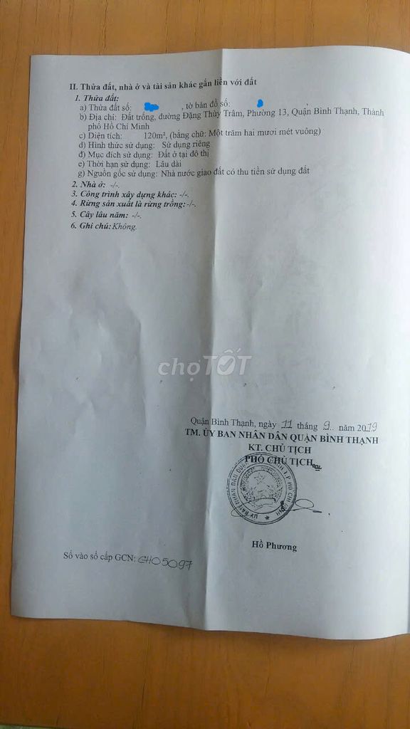 Đất 203/2 Đặng Thùy Trâm. 6x20m. giá 13,5 tỷ. Hẻm thông 12m.