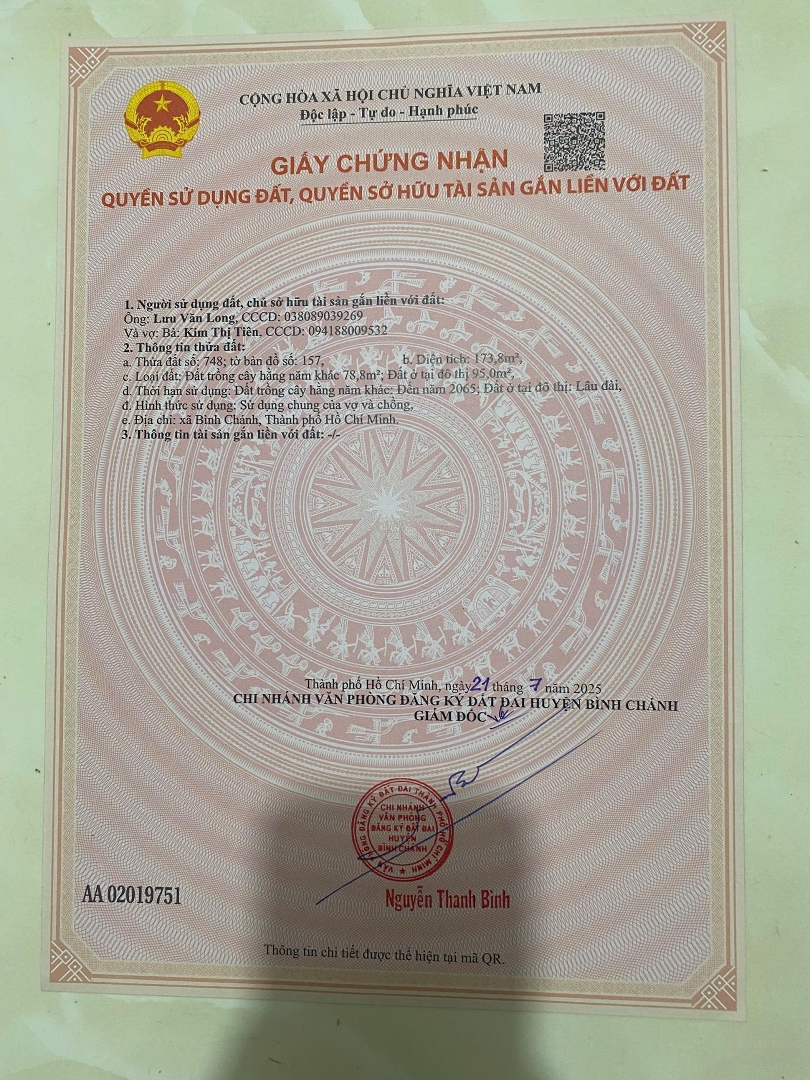 Bán lô góc 2 mt đường xe hơi, xã An Phú Tây, dt 173m3 có 100 thổ cư , trường chợ đi 5p, dân cư hiện hữu, an ninh tốt, shr, pháp lí chuẩnĐặc điểm nổi bậtDiện tích :173m2Mặt tiền :4mGiá :3,1 tỷ
