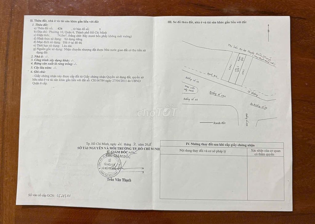 Đất sổ hồng 74m2 - Đường Số 33, Phường 10, Quận 6 (Chính Chủ)