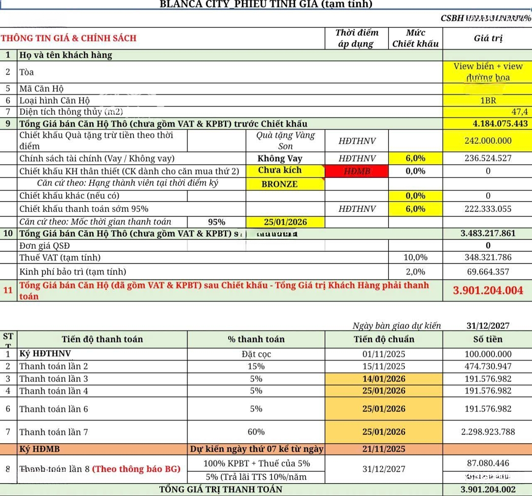 Sở hữu một bất động sản vừa để ở, vừa khai thác cho thuê hiệu quả ngay tại đô thị biển quy mô hàng đầu do Sun Group phát triển Blanka City, nơi hội tụ đầy đủ tiềm năng tăng giá và dòng tiền ổn định trong tương lai. Thông tin căn hộ: - Loại hình: Căn hộ 1 phòng ngủ tầng thấp, dễ khai thác cho thuê - Diện tích: 52,3 m - Thiết kế: 1 phòng ngủ, phòng khách kết nối với ban công rộng - View: Biển & đại lộ hoa hướng Đông Nam mát mẻ, đón nắng sáng, ngắm bình minh mỗi ngày Bàn giao: Full nội thất cao cấp, đặt hàng thiết kế riêng, phong cách trẻ trung hiện đại, tối ưu công năng và thẩm mỹ Giá bán hấp dẫn: Giá bán: 3,9 tỷ (theo phương án thanh toán 95%) Thanh toán linh hoạt, ngân hàng hỗ trợ vay Ân hạn gốc & lãi lên đến 3 năm với các ngân hàng: Vietcombank, MSB, NCB giảm áp lực tài chính, tối ưu dòng tiền đầu tư Blanka City Đô thị All In One quy mô 96 hecta Dự án được quy hoạch bài bản với hệ sinh thái tiện ích khép kín: - Trung tâm thương mại sầm uất - Khu vui chơi giải trí đẳng cấp - Công viên xanh, khu thể dục thể thao - Trường học, bệnh viện, tiện ích dân sinh đầy đủ Đây là đô thị biển hiếm hoi đáp ứng trọn vẹn nhu cầu an cư nghỉ dưỡng đầu tư trong cùng một không gian sống. Điểm nhấn tạo dòng tiền bền vững - Công viên nước Sun World kết hợp sân golf quy mô 15 hecta lớn nhất miền Nam, dự kiến thu hút lượng lớn khách du lịch trong và ngoài nước - Nguồn khách ổn định quanh năm, đặc biệt là khách gia đình, khách nghỉ dưỡng cao cấp - Căn hộ 1 phòng ngủ, tầng thấp, full nội thất sản phẩm dễ cho thuê, công suất khai thác cao, phù hợp cả thuê ngắn ngày lẫn dài hạn Kết nối giao thông chiến lược Gia tăng giá trị dài hạn - Nhanh chóng kết nối cao tốc Biên Hòa Vũng Tàu - Liên thông cao tốc Bến Lức Long Thành Sân bay quốc tế Long Thành đi vào hoạt động giúp rút ngắn thời gian di chuyển, gia tăng lượng khách du lịch & chuyên gia - Hạ tầng hoàn thiện chính là đòn bẩy giúp giá trị bất động sản Blanca City tăng trưởng mạnh mẽ trong tương lai. Thời điểm vàng để sở hữu - Dự kiến bàn giao cuối năm 2027 - Khi nhận nhà có thể vào ở ngay hoặc khai thác cho thuê liền, không mất thời gian hoàn thiện - Phù hợp cả nhà đầu tư tìm kiếm dòng tiền đều đặn lẫn khách hàng mua để ở, nghỉ dưỡng dài hạn Blanca City không chỉ là nơi an cư lý tưởng, mà còn là tài sản đầu tư mang lại giá trị cao và dòng tiền ổn định theo thời gian. Liên hệ: Ngọc Dung SRT để nhận báo giá chi tiếtĐặc điểm nổi bậtDiện tích :52.3m2Giá :3,9 tỷPhòng ngủ :1 phòngPhòng tắm :1 phòng