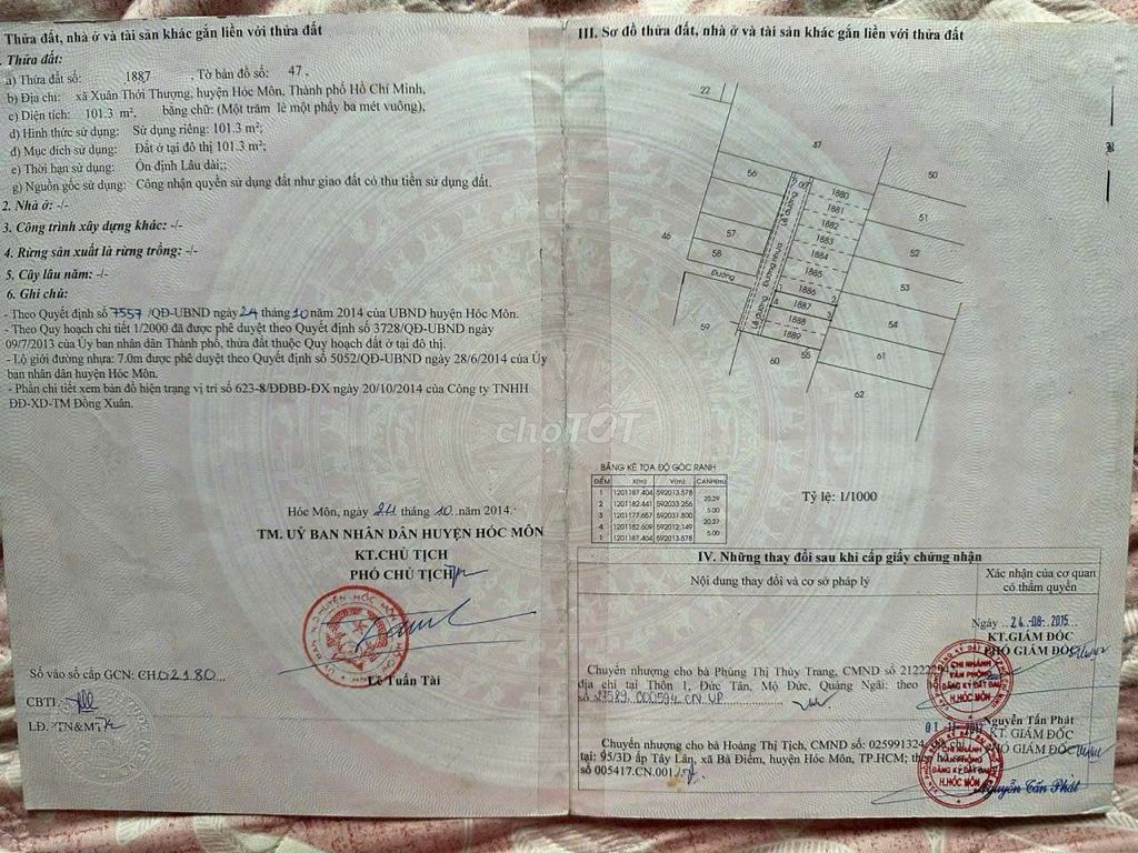 Bán đất thổ cư xtt củ bà điểm mới