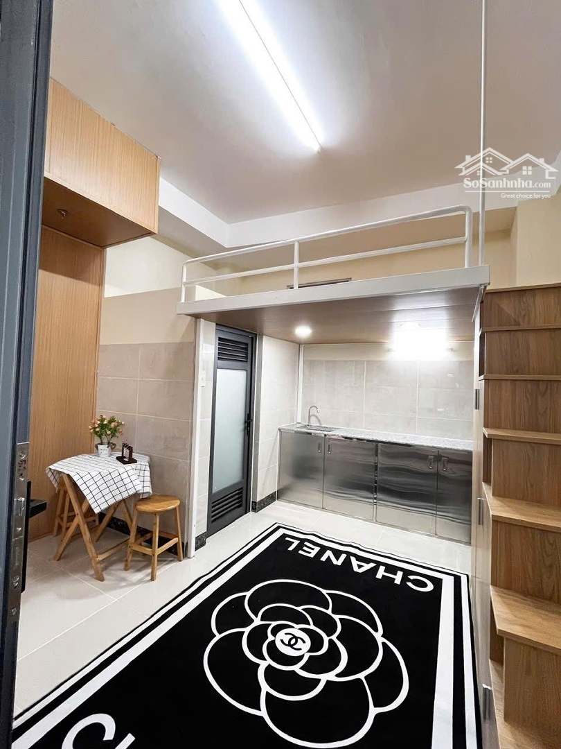 Diện tích & Kết cấu - 25m, gác lửng rộng, trần cao thoáng mát - Không gian gồm: phòng khách, bếp riêng, WC khép kín, gác ngủ Nội thất đầy đủ - Vào ở ngay!! - Máy lạnh, tủ lạnh, sofa, bàn trà, kệ bếp, bếp từ, máy hút mùi - Cầu thang gỗ chắc chắn, thiết kế hiện đại, ánh sáng tự nhiên Vị trí đắc địa - Gần chợ, siêu thị, quán ăn, cafe - Gần trường ĐH UTH, HUTECH, VLU cs2, UEF,... An ninh tuyệt đối - Khóa vân tay, camera 24/7, khu dân cư văn minh Giảm 1TR2 cho Sinh Viên Năm Nhất Liên hệ ngay NHẬT) để giữ căn đẹp - số lượng có hạn!Đặc điểm nổi bậtDiện tích :25m2Giá :5,5 triệu/thángPhòng ngủ :1 phòngPhòng tắm :1 phòng