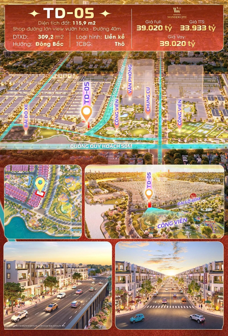 BÁN LIỀN KỀ VINHOMES ĐAN PHƯỢNG KHU ĐÔ THỊ ĐÁNG SỐNG BẬC NHẤT PHÍA TÂY HÀ NỘI Vị trí trung tâm đại đô thị Vinhomes Đan Phượng Đường rộng, vỉa hè thoáng ô tô đỗ ngày đêm Thiết kế hiện đại, tối ưu công năng ở sướng, kinh doanh tốt Hưởng trọn tiện ích 5: công viên, hồ điều hòa, trường học, TTTM, an ninh 24/7 Phù hợp ở thực đầu tư cho thuê mở văn phòng Giá tốt nhất phân khu hỗ trợ vay ngân hàng pháp lý rõ ràngĐặc điểm nổi bậtDiện tích :116m2Mặt tiền :8mGiá :34 tỷSố tầng :4 tầngPhòng ngủ :4 phòngPhòng tắm :4 phòngĐường vào :10m