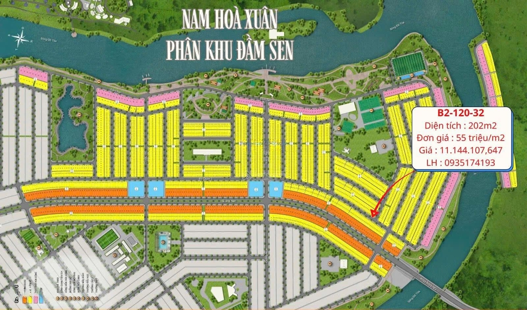 Lô góc bờ quan 3 view công viên đầm sen - Nam Hoà Xuân. B2 - 157 - 33, diện tích 168m2, giá 14.55 tỷ view Công viên 2 mặt thoáng. B2 - 120 - 32 Bờ Quan 3, diện tích 202m2, giá 11.144 tỷ. B2 - 115 - 30, diện tích 213m2, giá 13.53 tỷ đối diện trường học. Giá trị nổi bật: Lô góc hiếm vị trí đẹp, tính thanh khoản cao. View công viên không gian sống xanh, bền giá. Phù hợp vừa ở, vừa đầu tư, vừa khai thác kinh doanh. Liên hệ Kiều Anh Công Ty CP BĐS Thiên Phát.Đặc điểm nổi bậtDiện tích :202m2Giá :11,14 tỷ