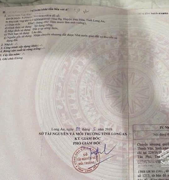 Ngay đầu đường Đồn Cây Dương - ấp Bình Tiền 1- xã Đức Hoà Hạ- huyện Đức Hoà vào tầm 600m. - diện tích : 5 x 17m - thổ 100% - sổ hồng riêng - toạ lạc : ấp bình tiền 1 - xã đức hoà hạ - - - - Giá bán: 720 triệu còn thương lượng đất nằm vị trí sát chợ, dân cư đông đúc, đất thổ xây nhà ngay, đường xá đi lại thuận lợi về Sài Gòn hay đi làm ở Tân Đô , Tân Đức. Liên hệ: Đặc điểm nổi bậtDiện tích :85m2Mặt tiền :40mGiá :720 triệuĐường vào :50m