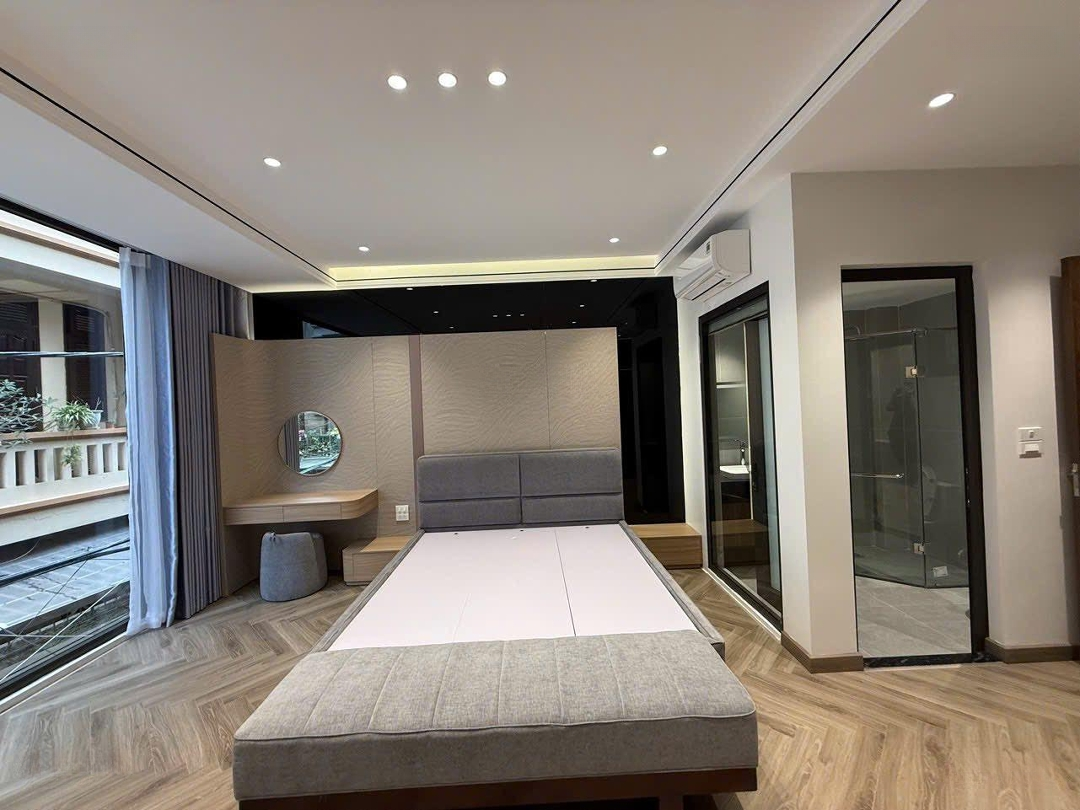 - Nhà xây 7 tầng thang máy, chủ nhà thuê kiến trúc sư nổi tiếng thiết kế nội thất xịn xò, tinh tế, chủ tặng full nội thất, khách chỉ việc xách vali về ở. Tháng máy, điều hòa âm trần, sàn gỗ xịn,... Tầng 1: Gara ô tô, vệ sinh. Tầng 2,3,4: Mỗi tầng 1 phòng ngủ Masrer xịn xò. Tầng 5,6: Thiết kế dạng duplex trong đó có phòng khách, bếp ăn và 1 phòng ngủ. Tầng 7: Phòng thờ, sân phơi. - Đường trước nhà thông thoáng ô tô 7 chỗ vào nhà. Khu vực an sinh cực tốt, hàng xóm văn mình, tiện ích không thiếu thứ gì. Mặt tiền hơn 5m rộng thênh thang, thửa đất vuông A4 không lỗi phong thủy. - Pháp lý rõ ràng, sổ đỏ chính chủ, sẵn sàng giao dịch. - Giá chào bán 24,5 tỷ có thương lượng.Đặc điểm nổi bậtDiện tích :55m2Mặt tiền :5.2mGiá :24,5 tỷSố tầng :7 tầngPhòng ngủ :4 phòngPhòng tắm :5 phòngĐường vào :5m