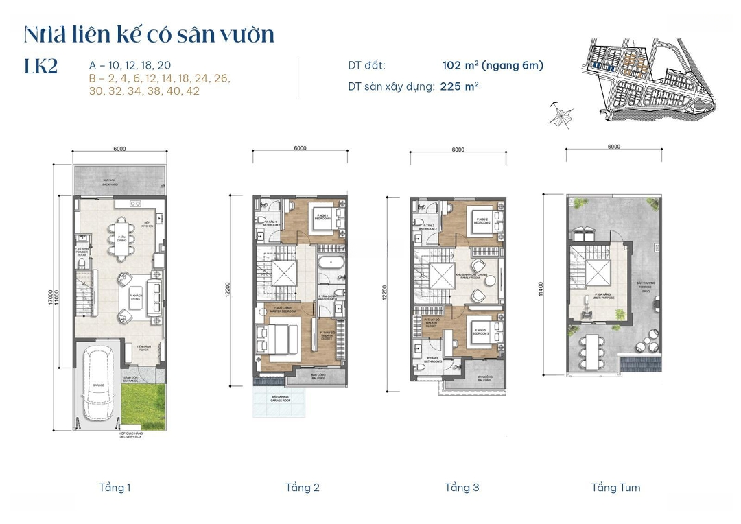 Nhà phố hoàn thiện nội thất - Gladia By The Waters. Nhà phố hoàn thiện nội thất theo chuẩn nhà mẫu CĐT, nằm trong khu biệt thự ven sông Gladia by the Waters, quy hoạch compound khép kín, an ninh 24/7. Phù hợp khách mua ở lâu dài hoặc giữ tài sản. Căn nhà đã hoàn thiện đồng bộ nội thất, bố trí công năng hợp lý, có thể vào ở hoặc sử dụng ngay, không cần đầu tư thêm. Thông tin chi tiết: Diện tích đất: 102 m² (6 x 17m). Diện tích sàn: 224.6 m² (3 tầng + 1 tum). Có chỗ đậu xe riêng, mái che. Công năng: Phòng khách bếp, 3 phòng ngủ, phòng làm việc, phòng sinh hoạt, sân thượng ~39 m². Vị trí: Mặt tiền đường lộ giới 25m, kết nối nhanh công viên Gia Đình, clubhouse nội khu, đường ven sông Rạch Chiếc và trục Võ Chí Công. Giá & phương án khai thác: Giá tham khảo: Khoảng 34 tỷ, trao đổi cụ thể khi làm việc trực tiếp. Căn nhà có phương án cho thuê sẵn trong năm đầu, giá thuê dự kiến khoảng 900 triệu/năm, thông tin chi tiết trao đổi khi khách xem nhà. Đức Lê Call/Zalo). Gửi thông tin chi tiết & đặt lịch xem nhà thực tế.Đặc điểm nổi bậtDiện tích :102m2Mặt tiền :6mGiá :34 tỷSố tầng :4 tầngPhòng ngủ :3 phòngPhòng tắm :5 phòng