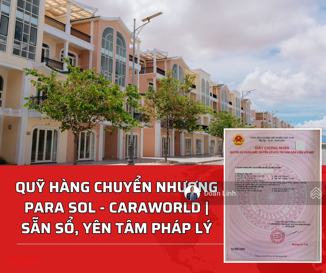 Quỹ Căn Chuyển Nhượng Para Sol - Caraworld Sổ Sẵn đỏ, Giá 4,2 Tỷ - 6 Tỷ, View Hồ, View Công Viên
